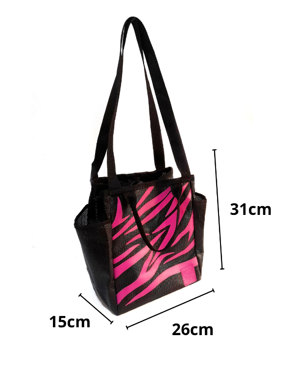 Incorpora manija corta y manija larga de 80 cm, permitiendo llevarlo al hombro o en mano según el contexto y el momento del día.