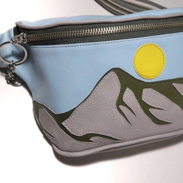 Riñonera con paisaje cortado a mano en diferentes materiales sinteticos.
